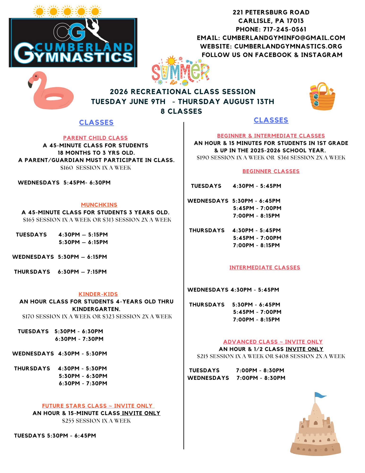 Summer registration is live! More information under the Classes tab.